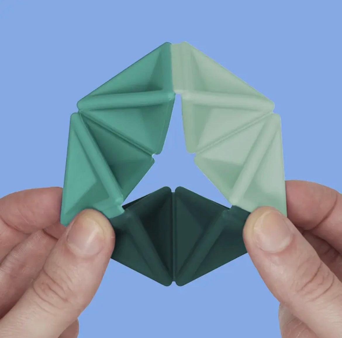 Pivots are silicone flexagons. A perfect quiet fidget sensory tool.
